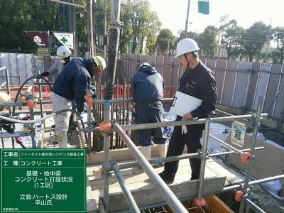12月27日 基礎・地中梁コンクリートの打設状況を確認しました。