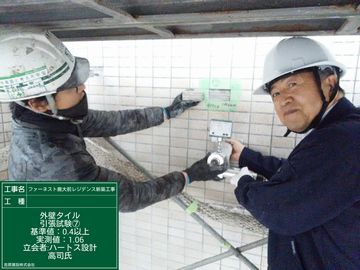 11月1日 12.13階の外壁タイル下地検査を行ないました。